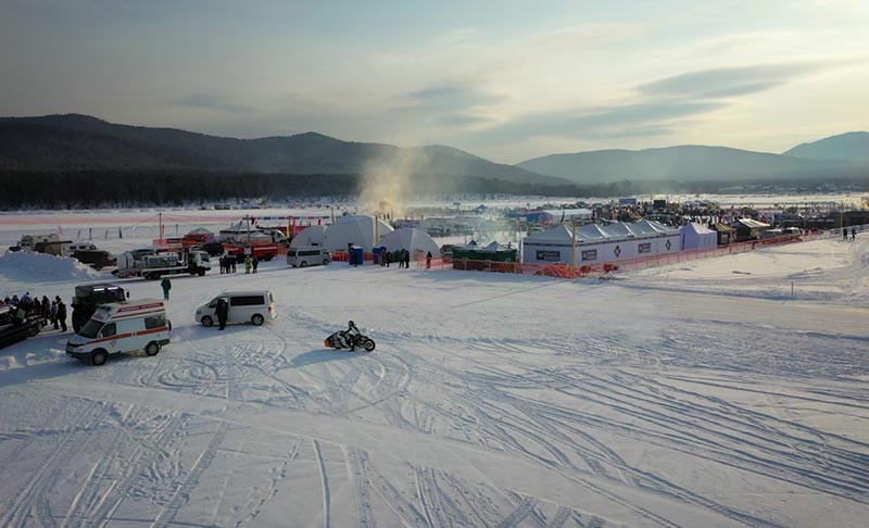 Pero la tranquilidad ya no existe durante la celebración del Baikal Mile Ice Speed.