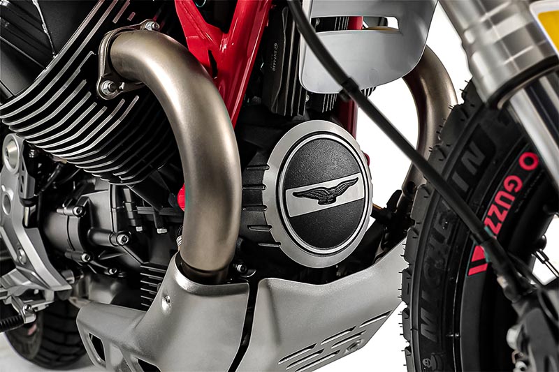 El centro protagonista es el motor bicilíndrico transversal en V a 90°. Su potencia es 80 CV (59 kW) a 7.750 rpm. No es un bólido, ni falta que hace. Deriva de las V9 (853 cc), cárter semiseco, cigüeñal aligerado en 1,3 kg, bielas y pistones más ligeros, doble bomba de engrase, válvulas de admisión de titanio, inyectores de aceite en la falda de los pistones y un sistema de recuperación de gases para superar la Euro 5. Solo tiene dos válvulas por cilindro, algo en desuso. Con cuatro mejoraría el rendimiento y aumentaría el consumo, evidentemente.