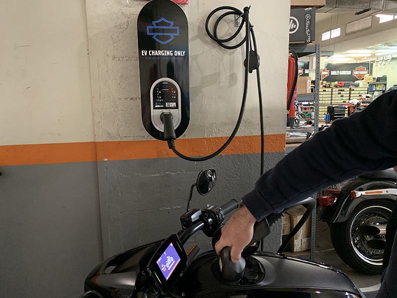 Utiliza el cargador de nivel 1 y el cable de alimentación incorporados para conectarte a cualquier enchufe doméstico estándar y obtener una carga completa durante la noche. 12 horas para el 100% . Ese cable lo incorpora de serie la LiveWire y se aloja bajo el doble asiento.